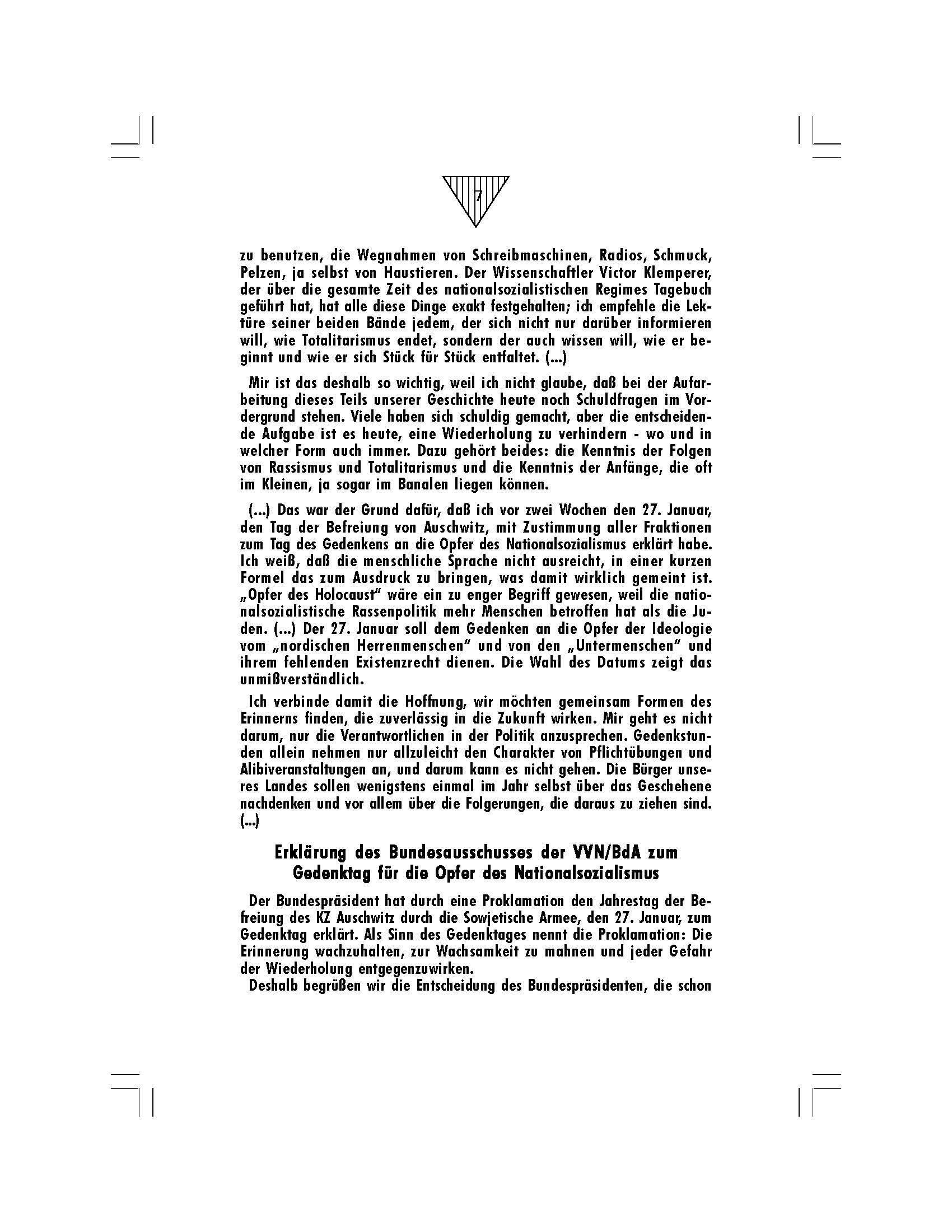 Die Sammlung plädiert für eine aktive Erinnerungskultur, die nicht nur das Leid der Opfer würdigt, sondern auch die Verantwortung für die Zukunft trägt. Sie ruft dazu auf, die Ursachen und Mechanismen des Faschismus offen zu analysieren und die gesellschaftlichen Lehren daraus zu ziehen, um Rassismus, Antisemitismus und jede Form von Ausgrenzung entgegenzutreten. Gedenken wird dabei als eine Verpflichtung zum Handeln verstanden, um die Wiederholung solcher Verbrechen zu verhindern und eine demokratische, gerechte Gesellschaft zu fördern.