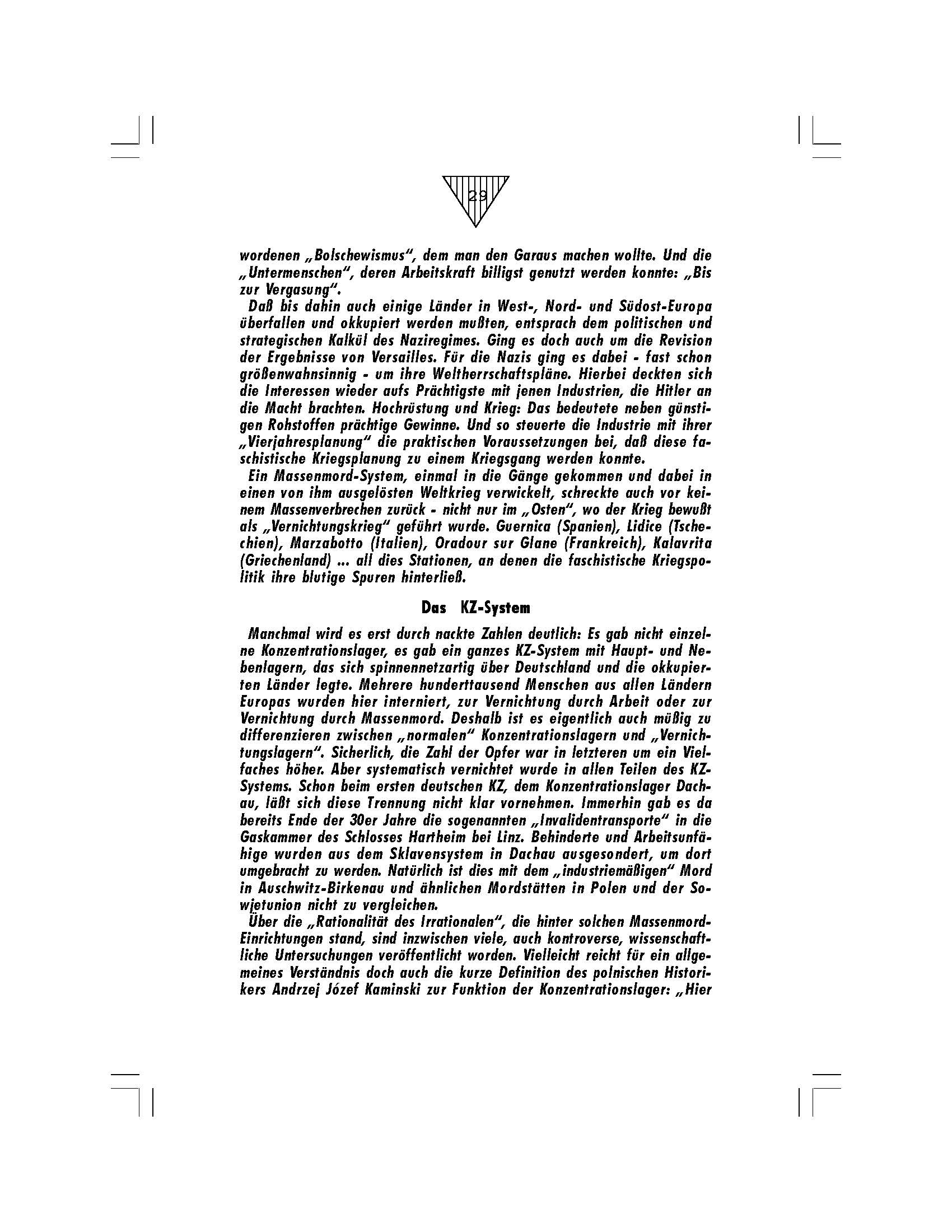 Die Sammlung geht detailliert auf die Mechanismen des Rassismus, der Entrechtung und der Gewalt ein, die schrittweise zur industriellen Massenvernichtung führten. Auschwitz steht symbolisch für den Höhepunkt dieser Entwicklungen, die bereits in den 1930er Jahren mit gesellschaftlicher und juristischer Ausgrenzung begannen. Die enge Verzahnung von Staat, Industrie und Ideologie wird anhand der Rolle von Konzernen wie IG Farben illustriert, die von Zwangsarbeit und Massenvernichtung profitierten. Diese Verflechtungen zeigen, wie wirtschaftliche Interessen die Verbrechen des Regimes unterstützten und mittrugen.