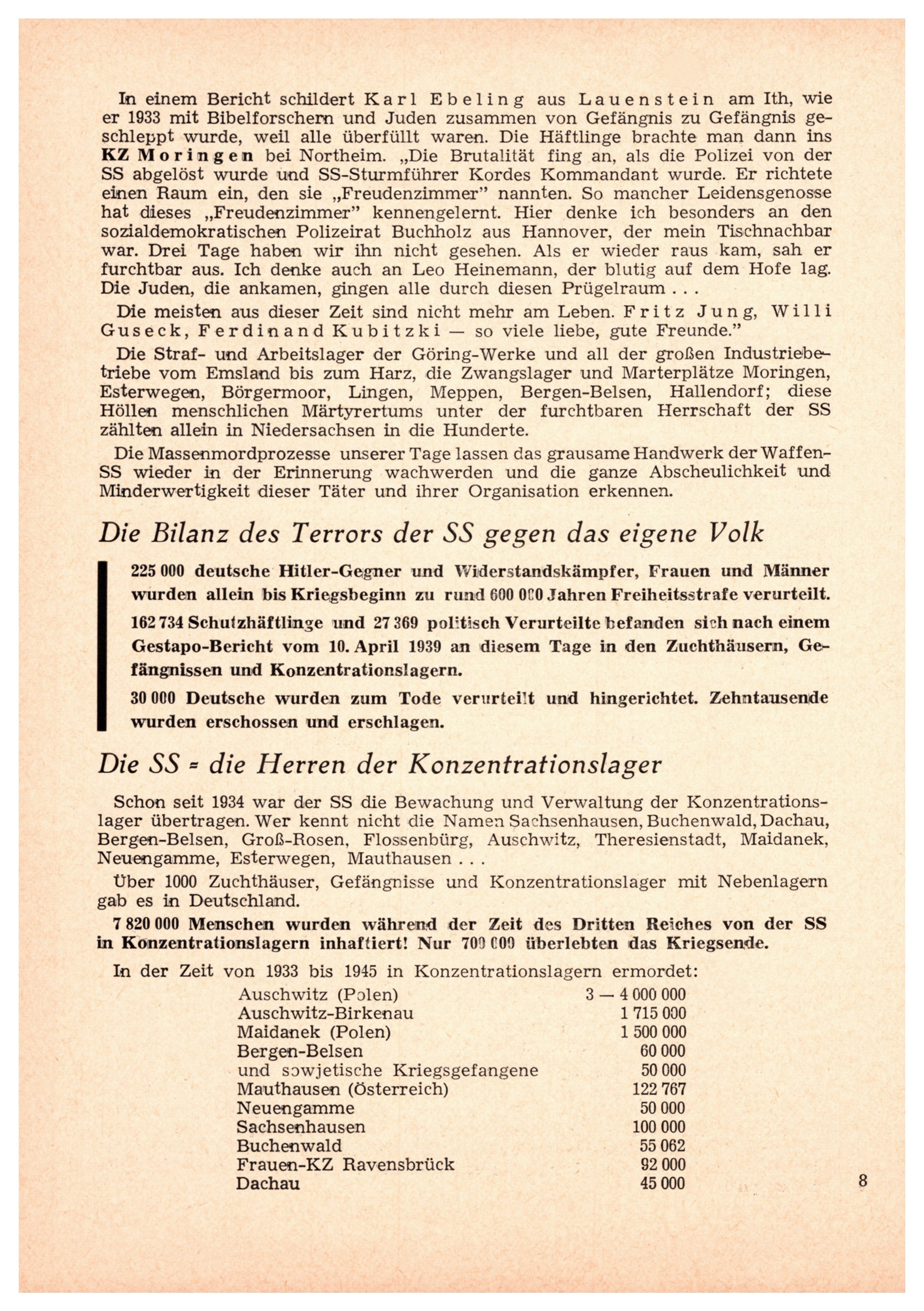 - **Weckruf an die Gesellschaft:** Die Broschüre ruft dazu auf, das Bewusstsein für die Gefahren durch ehemalige SS-Mitglieder zu schärfen und den Kampf gegen Faschismus konsequent fortzuführen.