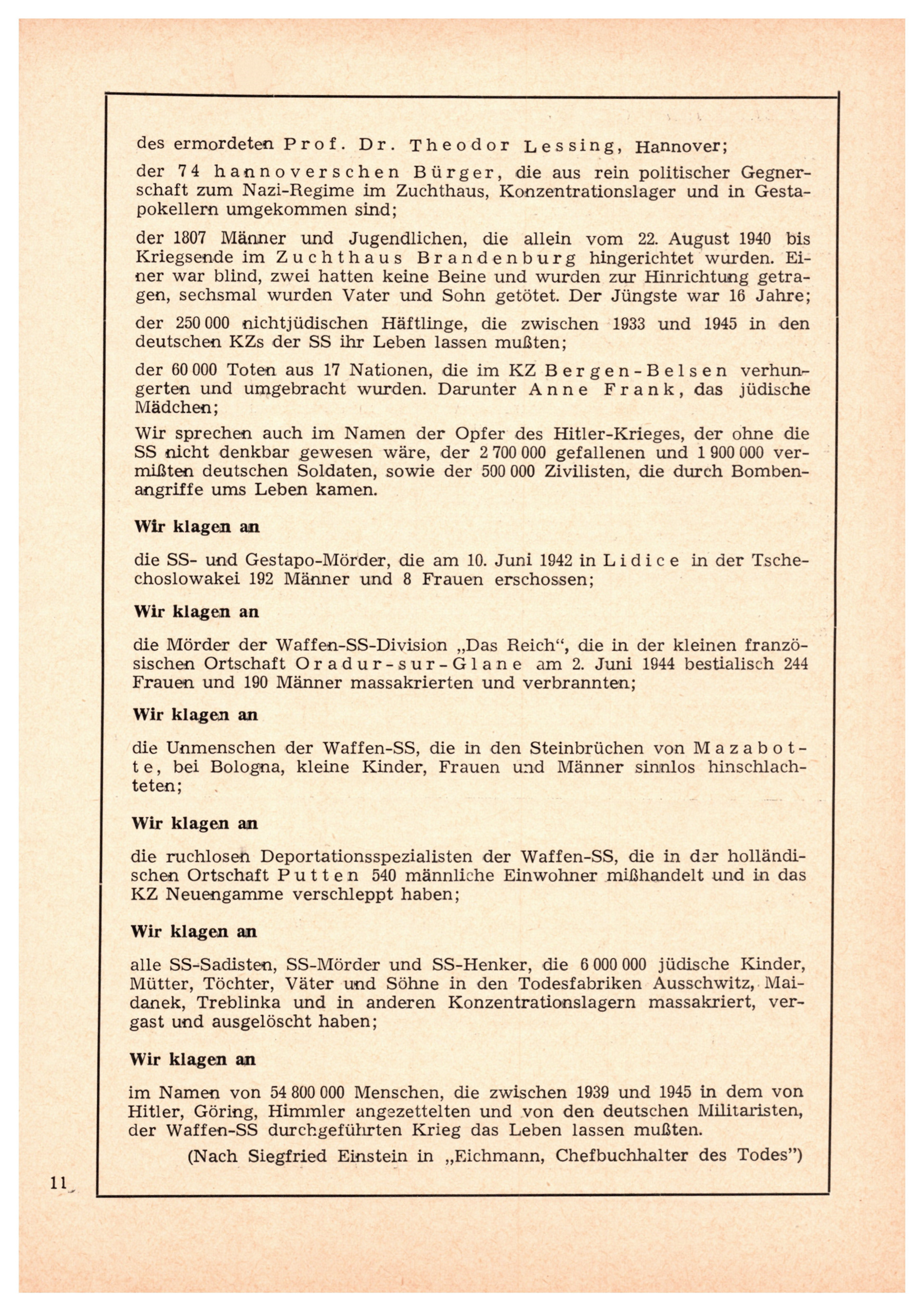 - **Verbrechen der SS:** Der Text hebt die fortwährende Aufdeckung von Kriegsverbrechen und Massenmorden durch ehemalige SS-Angehörige hervor, insbesondere im Kontext von Prozessen und gesellschaftlichen Diskussionen.