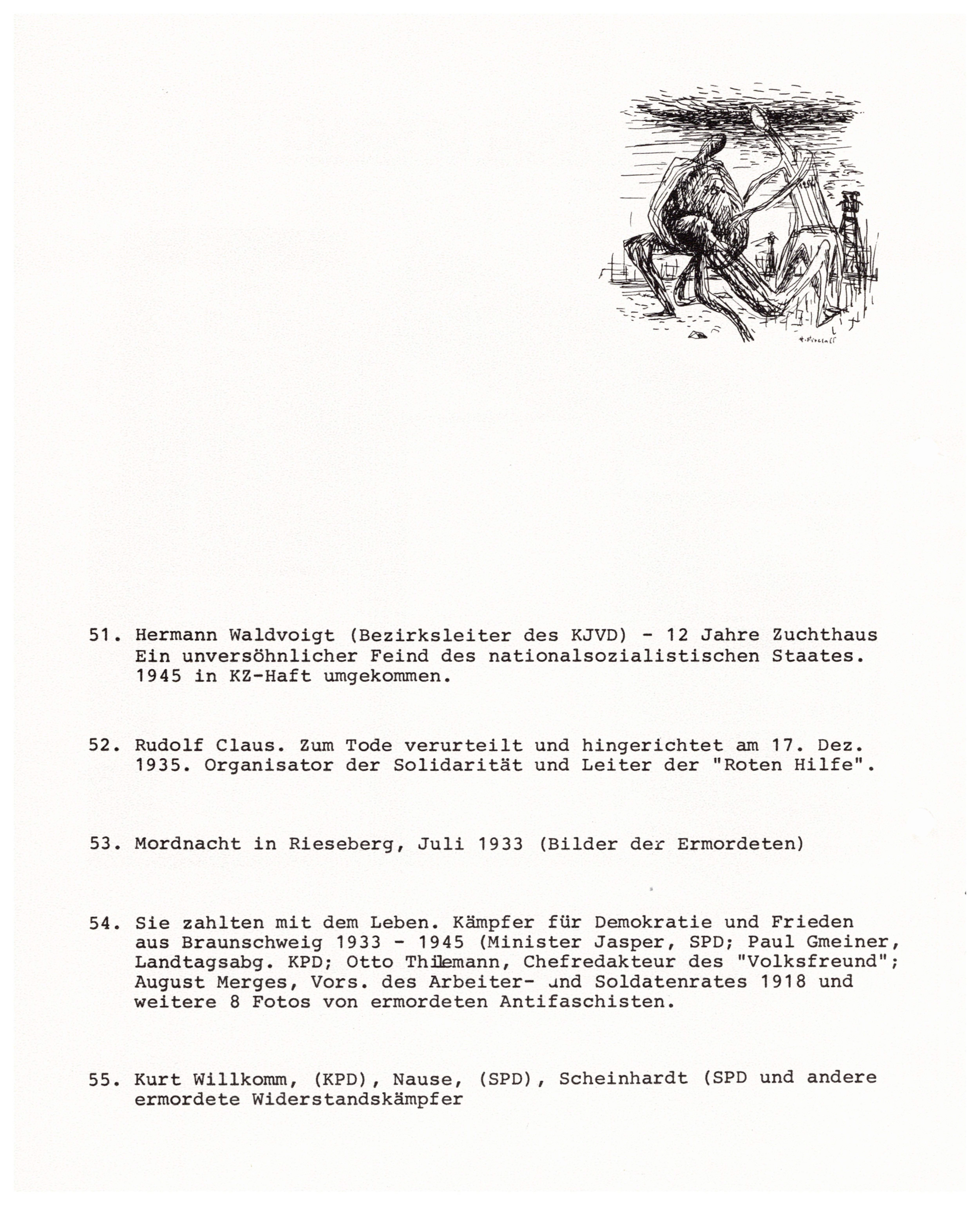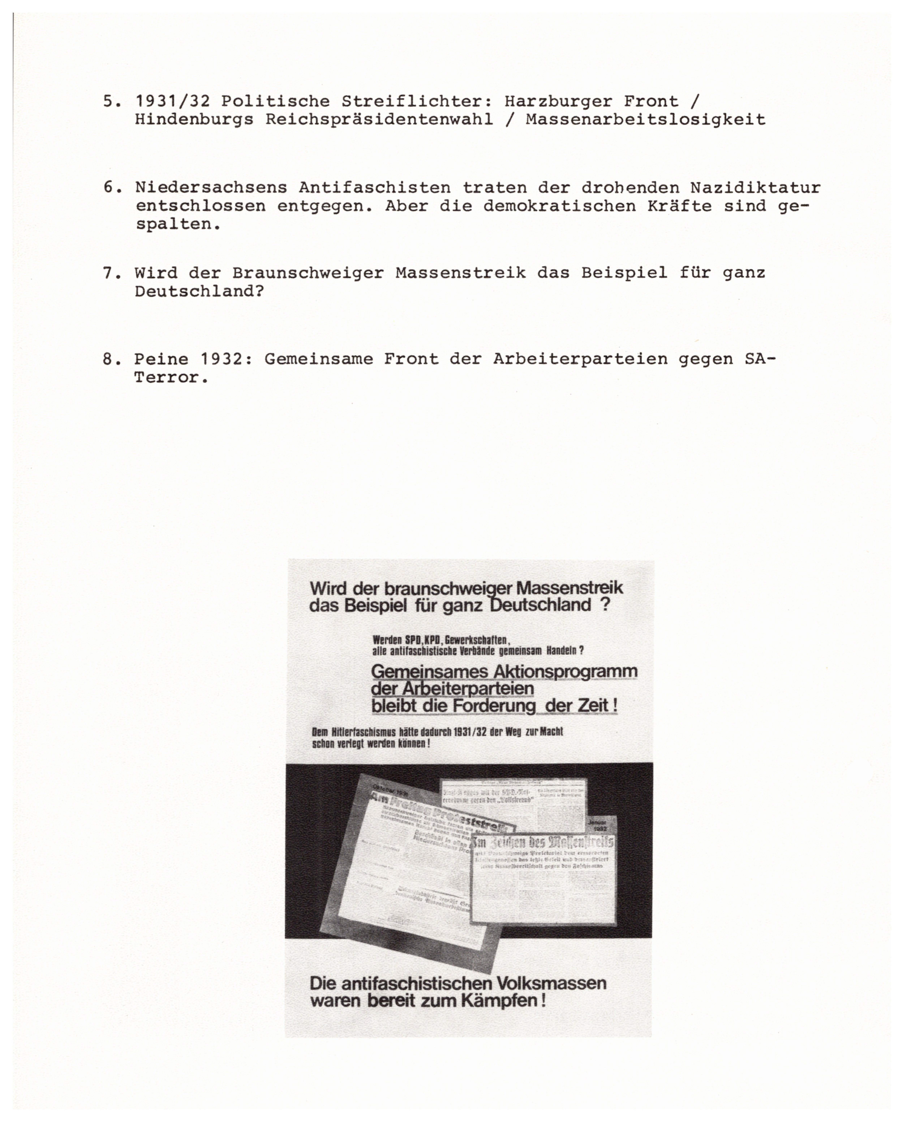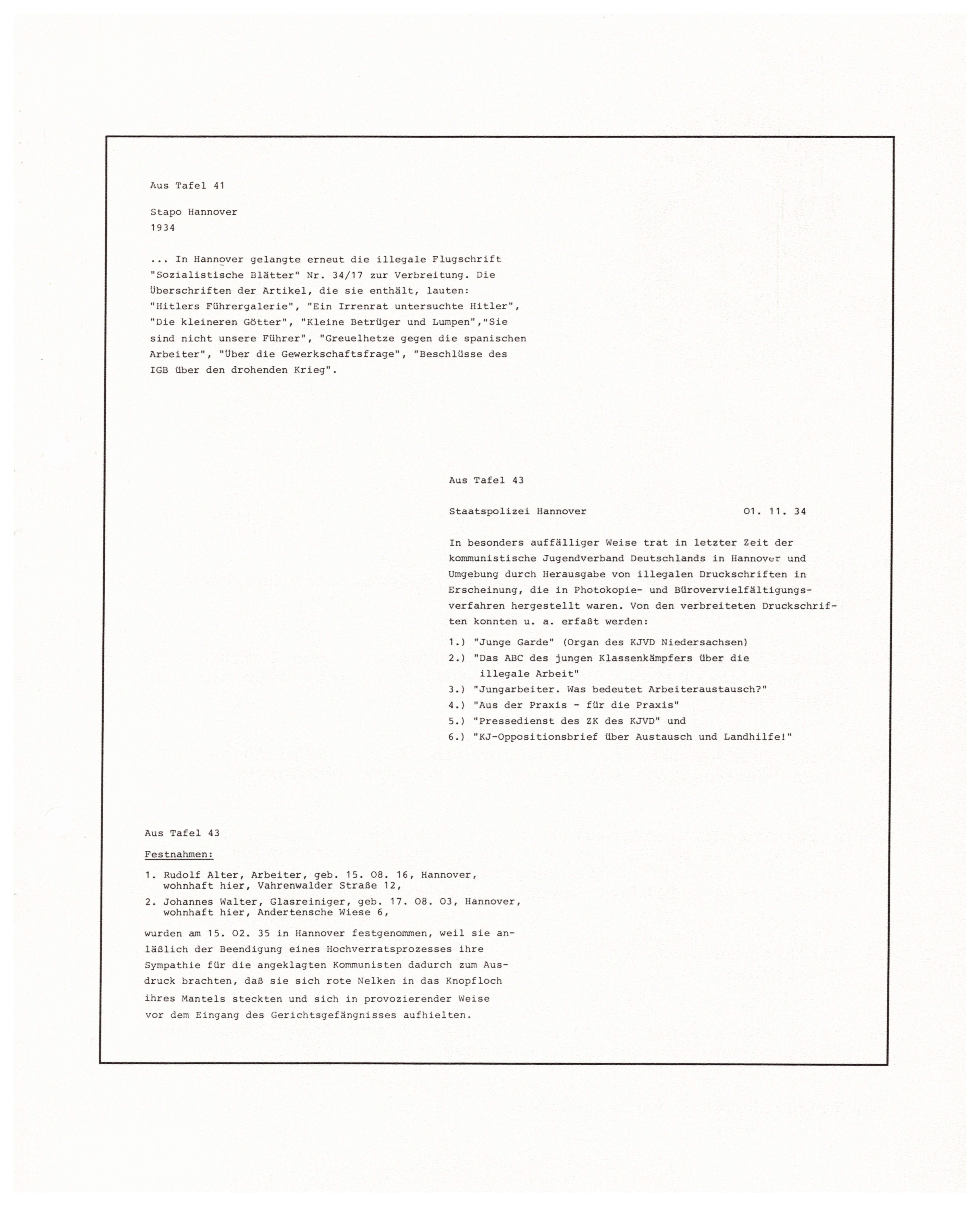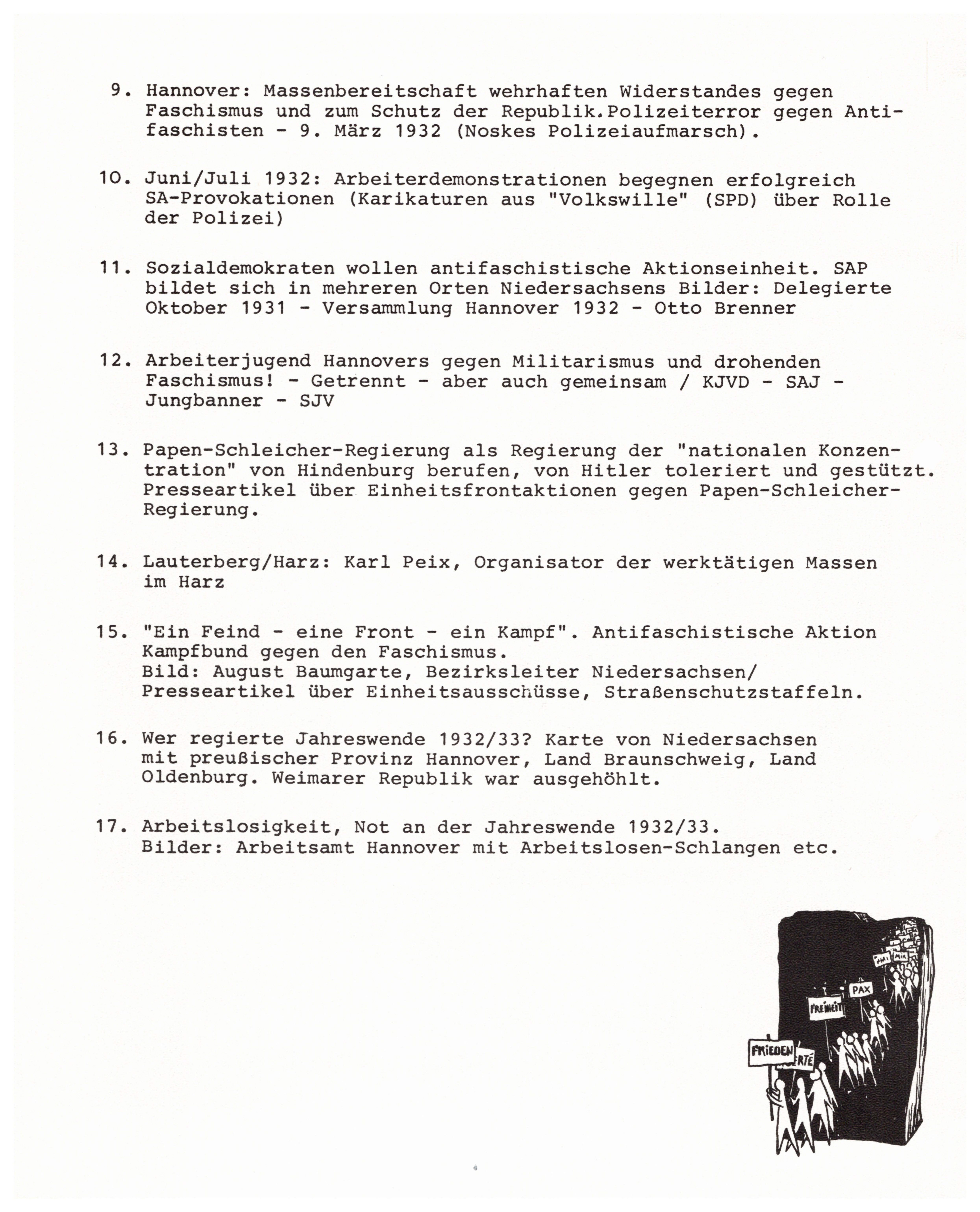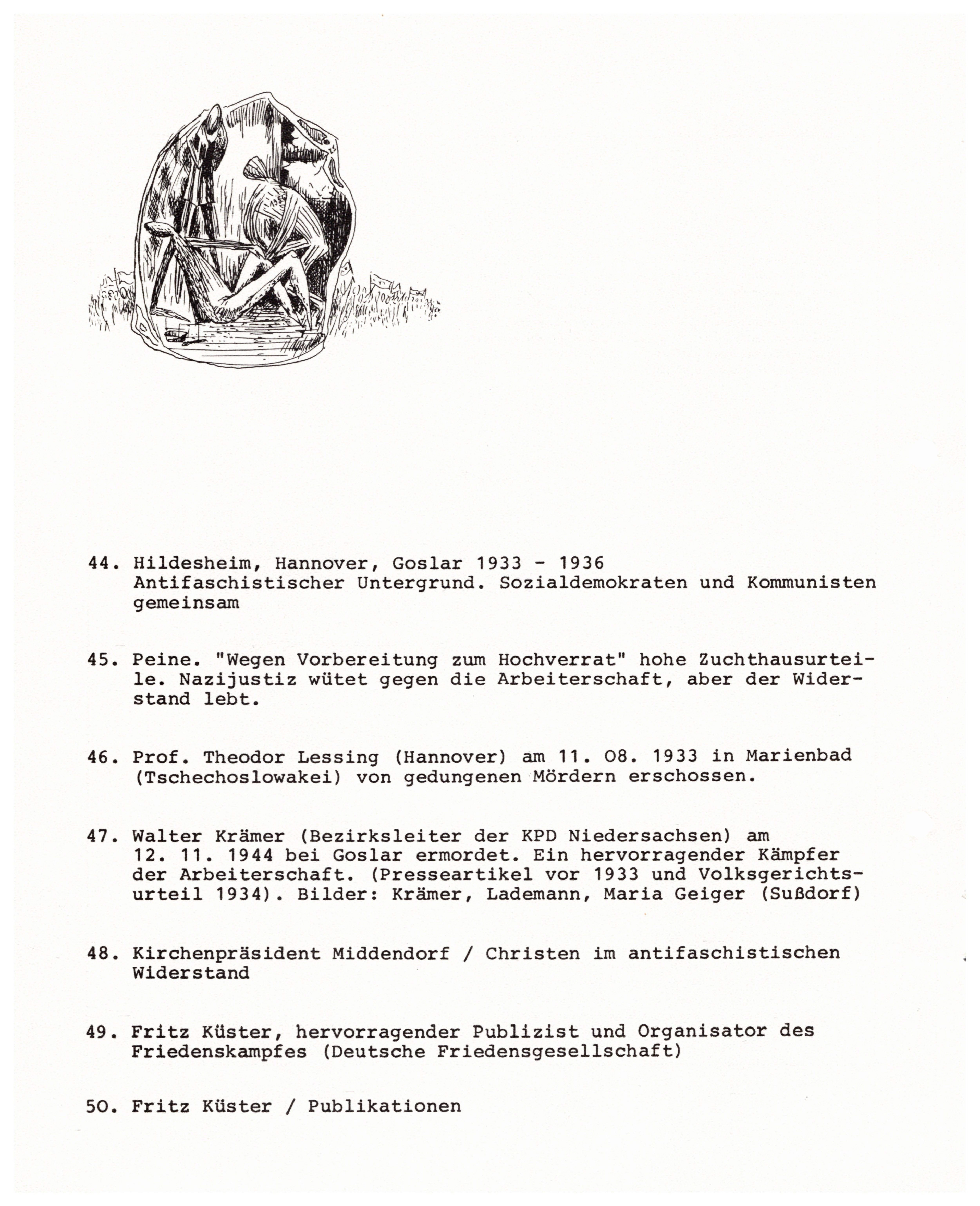 Die Wanderausstellung "Antifaschistischer Widerstand 1933–1945 in Niedersachsen" beleuchtet den Widerstand gegen den Nationalsozialismus in dieser Region und präsentiert auf 72 Tafeln eine Vielzahl von Bildern, Dokumenten und Texten. Sie zeigt die gesellschaftlichen und politischen Kämpfe während der Weimarer Republik, den Aufstieg der NSDAP, die Maßnahmen zur Etablierung der faschistischen Diktatur und die vielfältigen Formen des Widerstands, wie Arbeiterproteste, kirchliche Opposition, Jugendaktionen und individuelle Akte des Ungehorsams. Die Ausstellung würdigt die Opfer des Terrors und betont die Bedeutung von Mut, Solidarität und Engagement gegen Unrecht, wobei historische Gestapo-Dokumente und Biografien Widerstandskämpfer*innen veranschaulichen. Im Fokus steht die Botschaft, Lehren aus der Geschichte zu ziehen, Demokratie und Frieden zu verteidigen und wachsam gegenüber Faschismus zu bleiben.