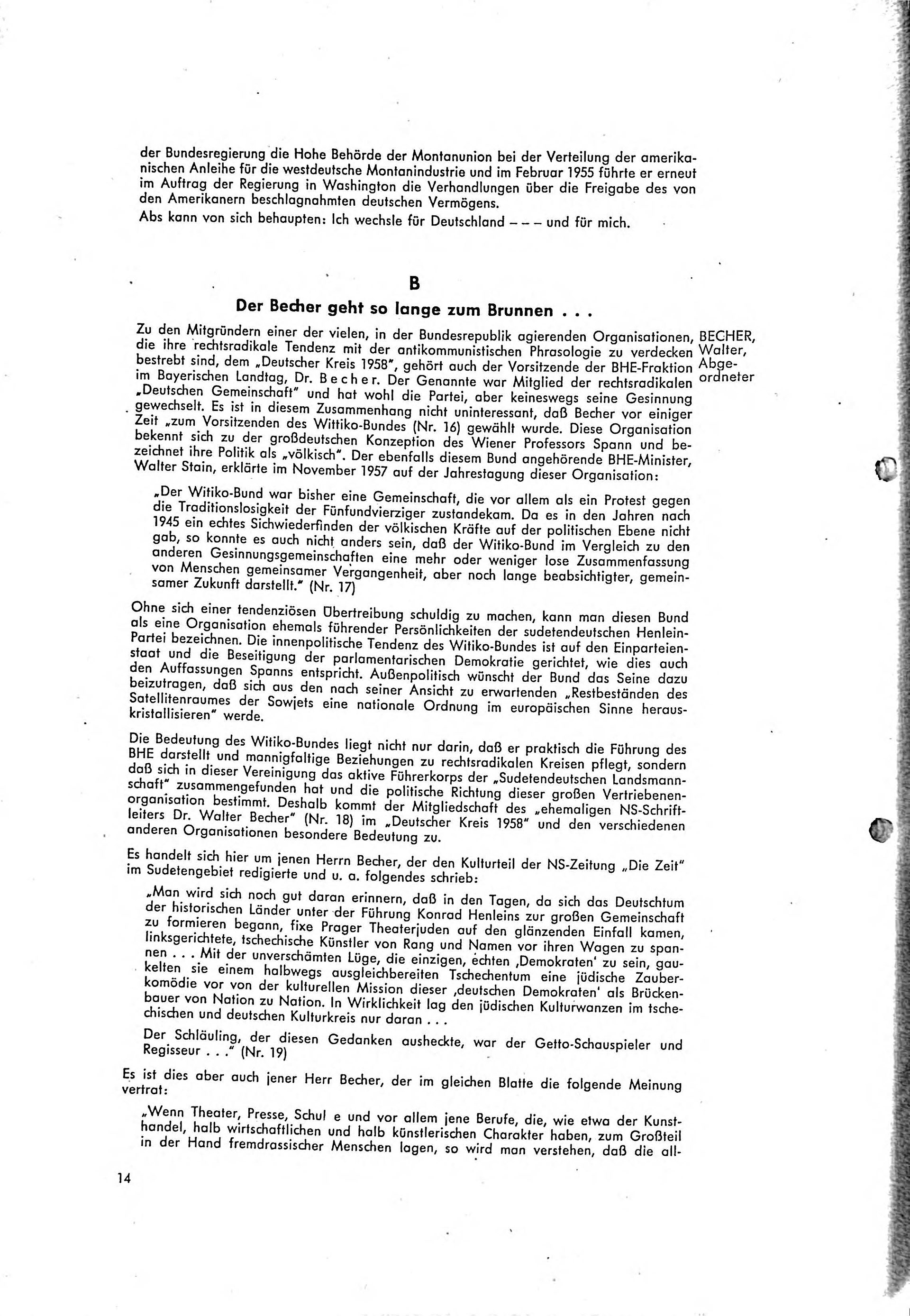 Der Text ist ein Auszug aus einer Veröffentlichung der Vereinigung der Verfolgten des Naziregimes (VVN) aus dem Jahr 1959. Im Kontext des 20. Jahrestags des Ausbruchs des Zweiten Weltkriegs wird die Bedeutung des Gedenkens betont und die Verantwortung hervorgehoben, eine Wiederholung der Ereignisse von 1939-1945 zu verhindern. Die Schrift ist eine Dokumentation, die den Einfluss militaristischer und faschistischer Tendenzen in der Bundesrepublik Deutschland thematisiert.
