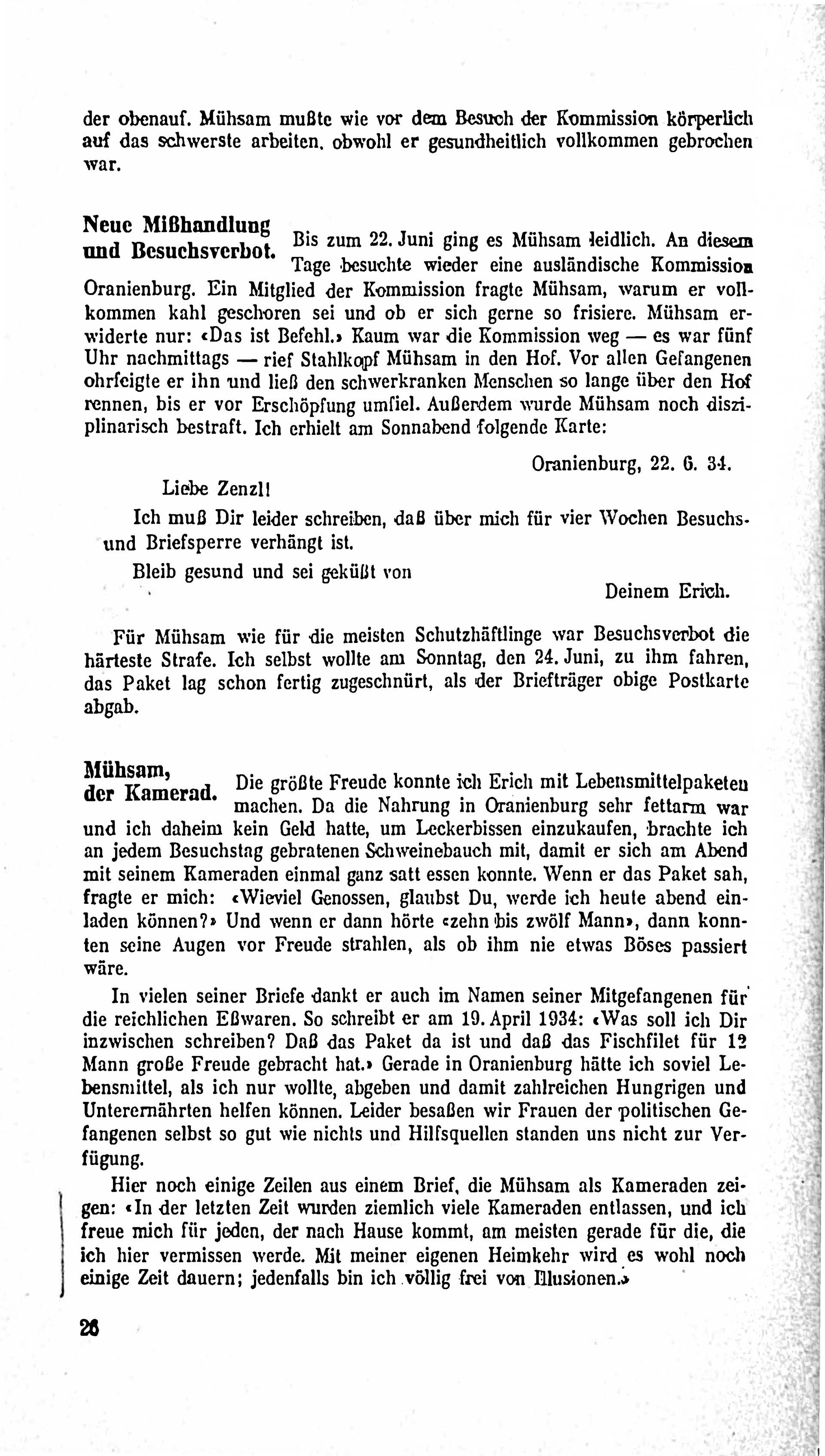 Mühsam kämpfte konsequent gegen kapitalistische und faschistische Unterdrückung. Nach seiner Inhaftierung aufgrund seiner Beteiligung an der Bayerischen Räterepublik verbrachte er mehrere Jahre in Gefängnissen und wurde später während der NS-Zeit in Konzentrationslagern unmenschlich misshandelt. 1934 wurde er von SS-Schergen ermordet.