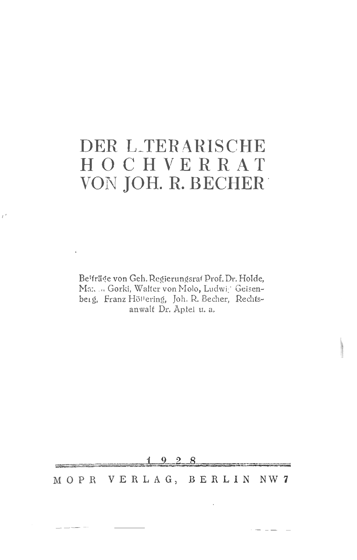 Der Text behandelt die Repressionen der deutschen Justiz in den 1920er Jahren gegen die Kommunistische Partei Deutschlands (KPD) und deren Umfeld, insbesondere gegen den Dichter Johannes R. Becher. Das Leipziger Reichsgericht konstruiert den Begriff des „permanenten Hochverrats“, um systematisch gegen die KPD und ihre Unterstützer vorzugehen. Literatur mit revolutionärem Inhalt wird kriminalisiert, und Künstler, Verleger sowie Drucker werden strafrechtlich verfolgt. Dies wird als Angriff auf die Meinungsfreiheit, Kunstfreiheit und die Reichsverfassung kritisiert. Der Text zieht Parallelen zur repressiven Gesetzgebung des Sozialistengesetzes (1878–1890) und zeigt die Willkür der Klassenjustiz auf, die ohne gesetzliche Grundlage revolutionäre Ideen unterdrückt.