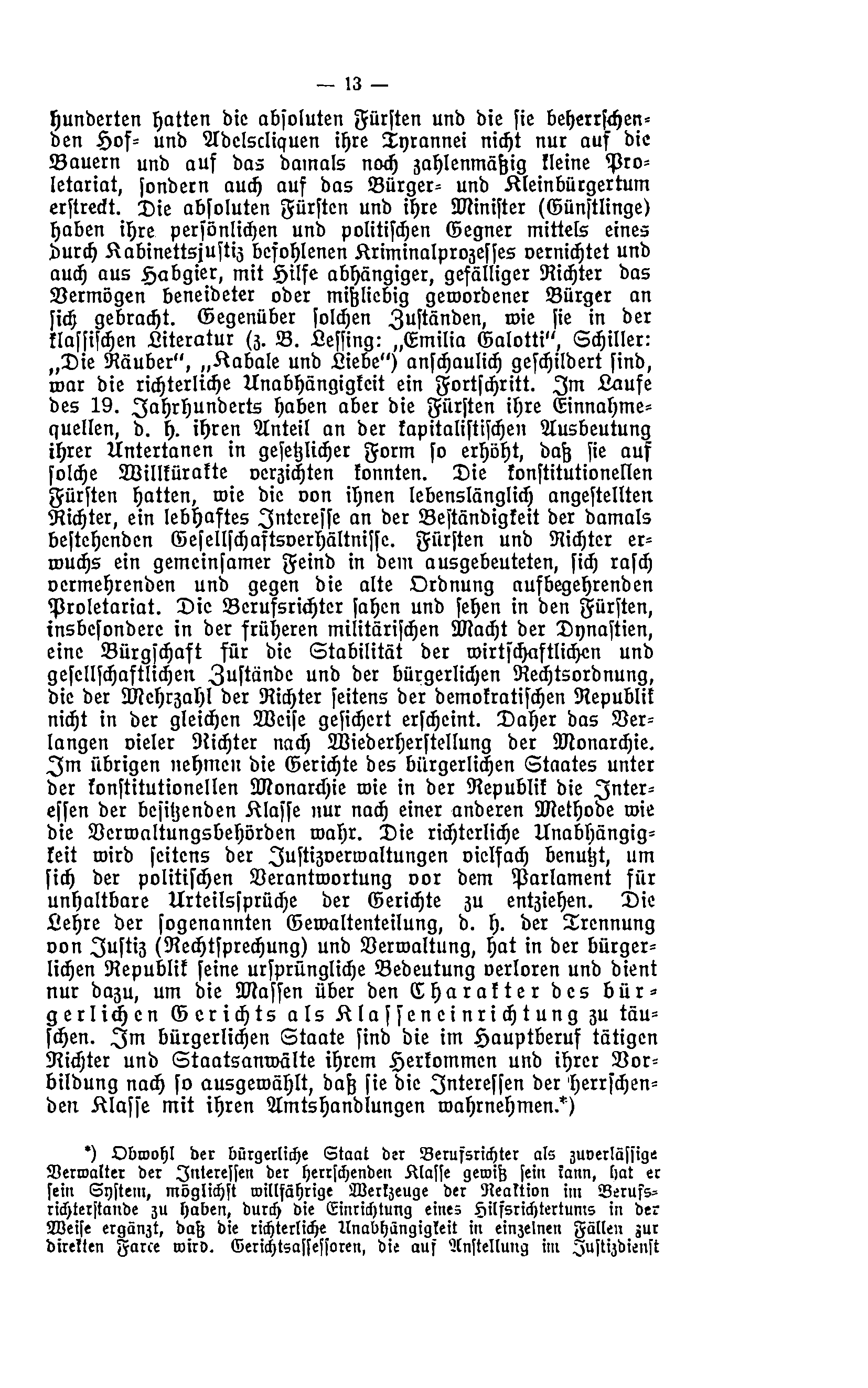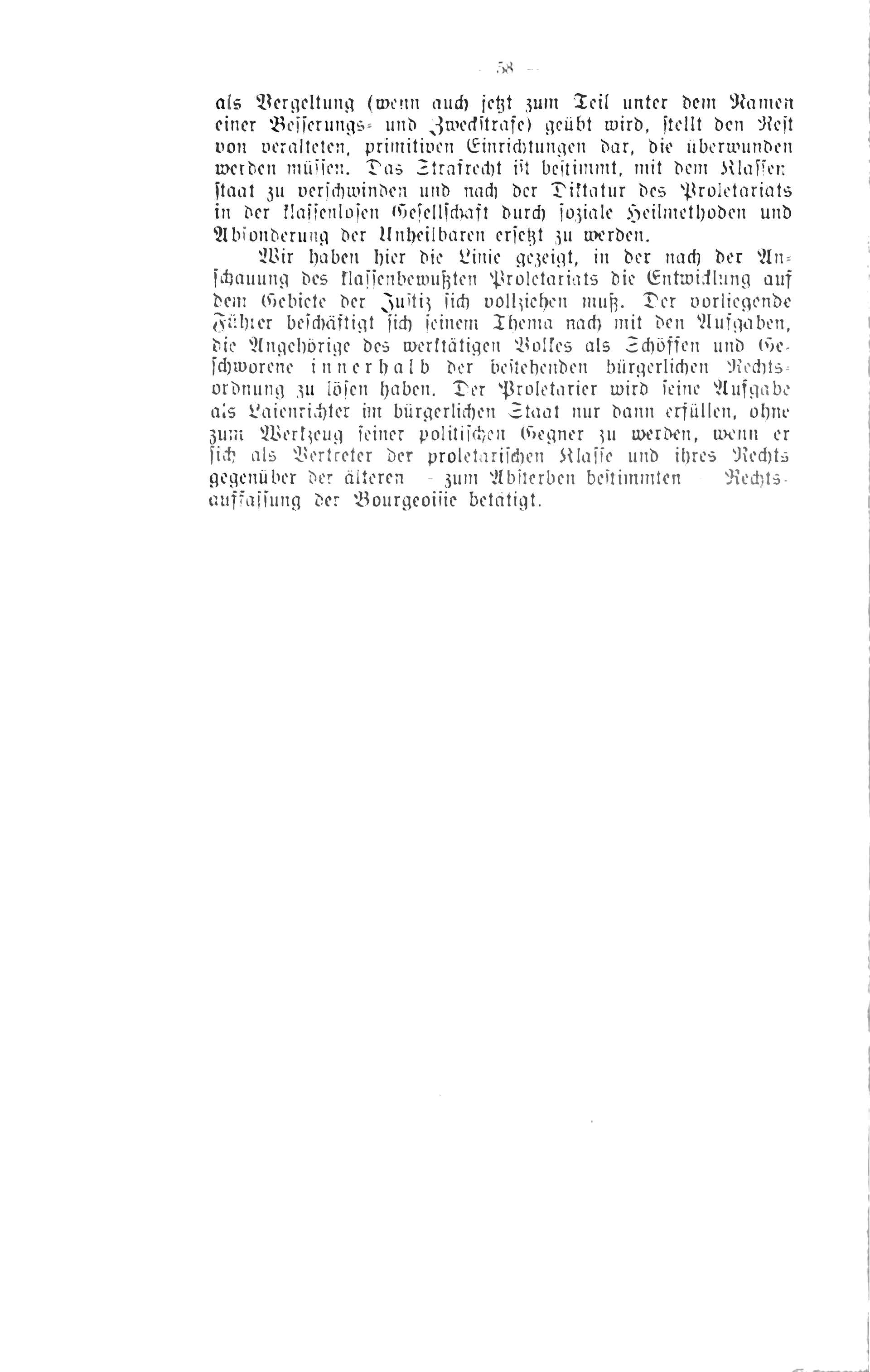 Der Text thematisiert die Bedeutung der Beteiligung des Proletariats und anderer Bevölkerungsgruppen wie Arbeiter, Angestellte, Kleinbauern und Frauen an der Strafgerichtsbarkeit in Deutschland (1916). Ziel ist es, diese Gruppen über ihre Rechte und Pflichten als Schöffen und Geschworene aufzuklären und ihre Mitwirkung in der Justiz zu fördern. Der Fokus liegt auf einer knappen Darstellung der Organisation der Gerichte, relevanter gesetzlicher Bestimmungen und Abläufe, die für Laienrichter besonders wichtig sind. Dies soll das Verständnis stärken und die aktive Teilnahme an der Rechtsprechung erleichtern, insbesondere vor dem Hintergrund sozialer Gerechtigkeit.