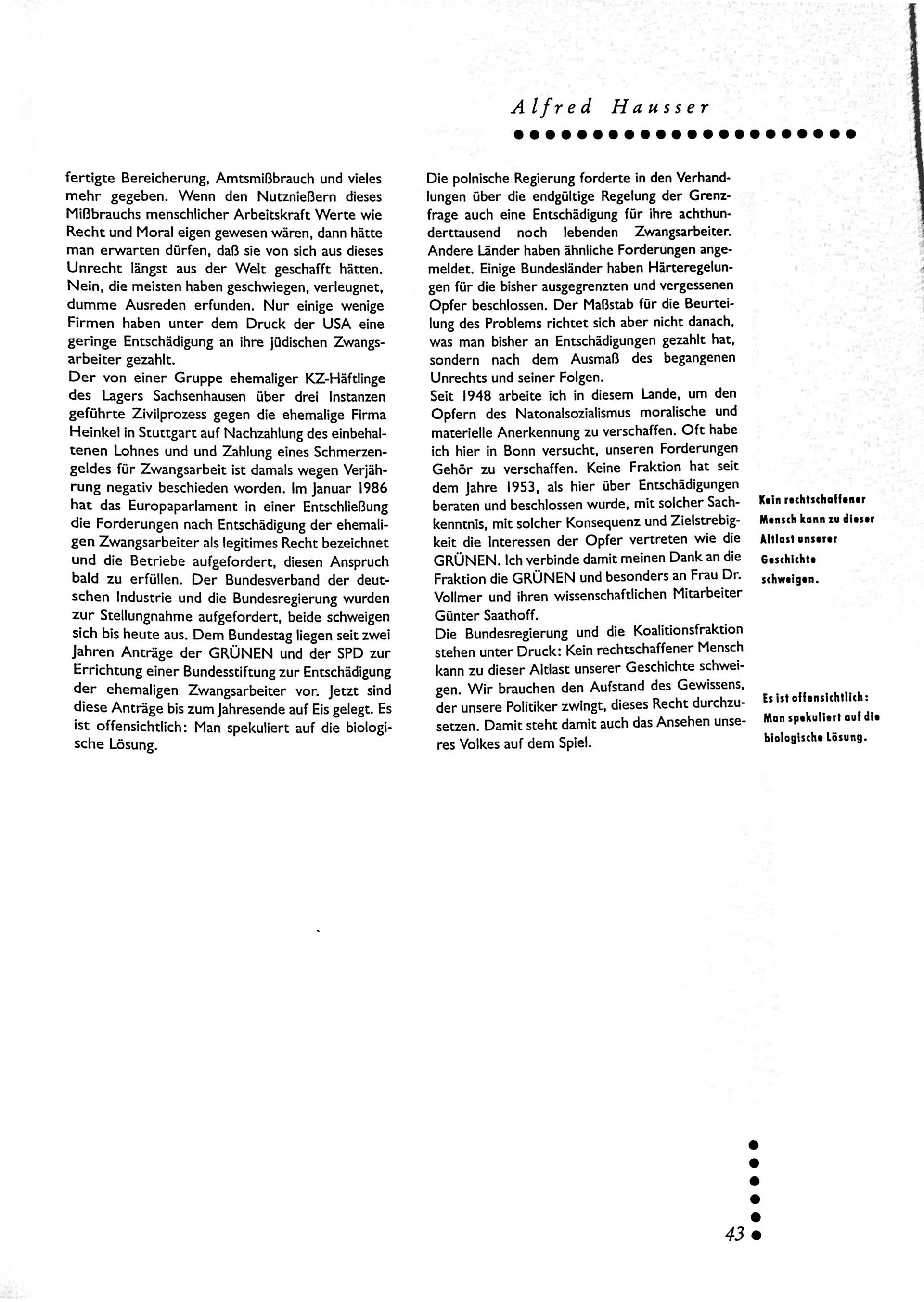 Das Dokument stellt die Stimmen der Überlebenden und Widerstandskämpfer in den Mittelpunkt, die sowohl Warnungen als auch Hoffnungen ausdrücken. Es fordert eine klare politische Haltung gegen Faschismus und Rassismus und betont die Bedeutung von Bildung und Erinnerungsarbeit, um zukünftige Generationen zu sensibilisieren. Die Wiedervereinigung wird als historisches Ereignis beschrieben, das sowohl Chancen als auch Gefahren birgt, und es wird betont, dass die Art und Weise, wie Deutschland mit seiner Vergangenheit umgeht, entscheidend für seine zukünftige gesellschaftliche und politische Entwicklung ist.