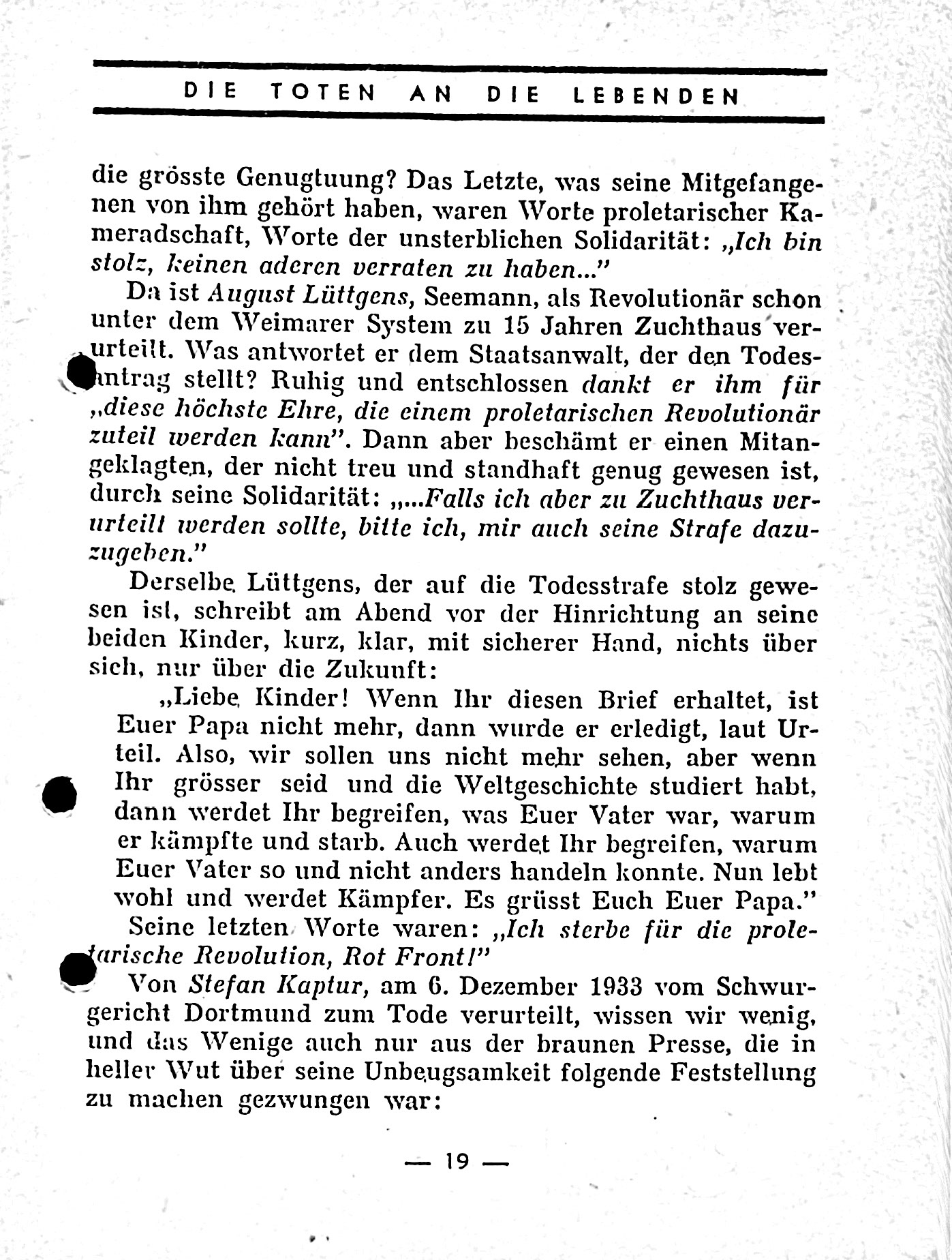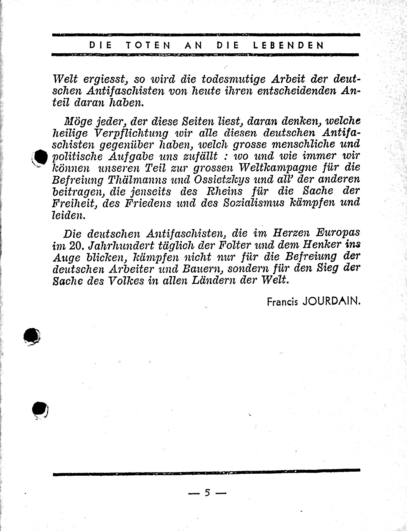 Der Text würdigt den Mut und die Opferbereitschaft deutscher Antifaschisten während der NS-Zeit, die gegen das nationalsozialistische Regime kämpften. Es wird beschrieben, wie diese Menschen, trotz der ständigen Gefahr von Folter und Hinrichtung, für Freiheit, Frieden und Sozialismus eintraten. Der Text kontrastiert das propagandistische Heldentum des Nationalsozialismus mit dem stillen, realen Heldentum der Widerstandskämpfer, die oft anonym und ohne Ruhm ihre Überzeugungen bis zum Tod verteidigten. Besonders hervorgehoben wird die Bedeutung ihres Kampfes als Beitrag zum weltweiten Widerstand gegen Faschismus und Krieg. Der Text fordert, diese Opfer als Verpflichtung zu begreifen, selbst aktiv gegen Unrecht einzutreten.