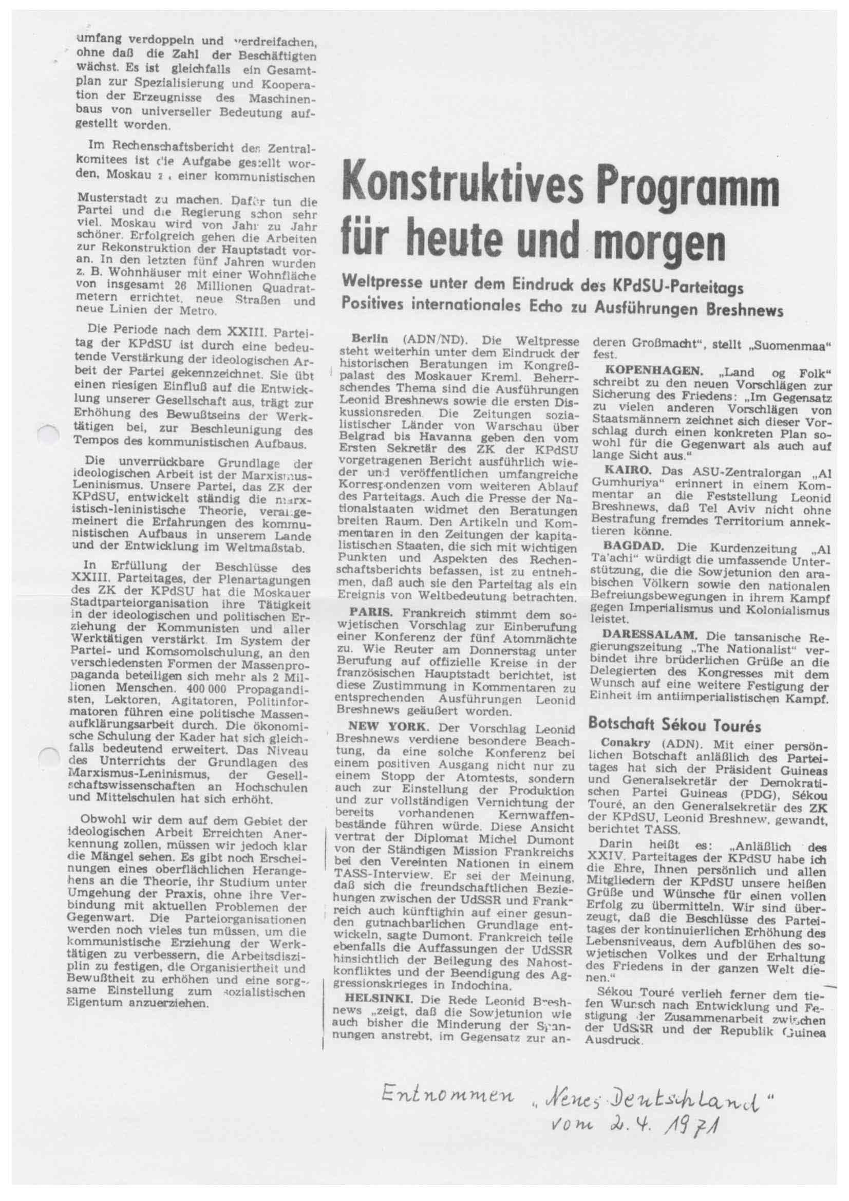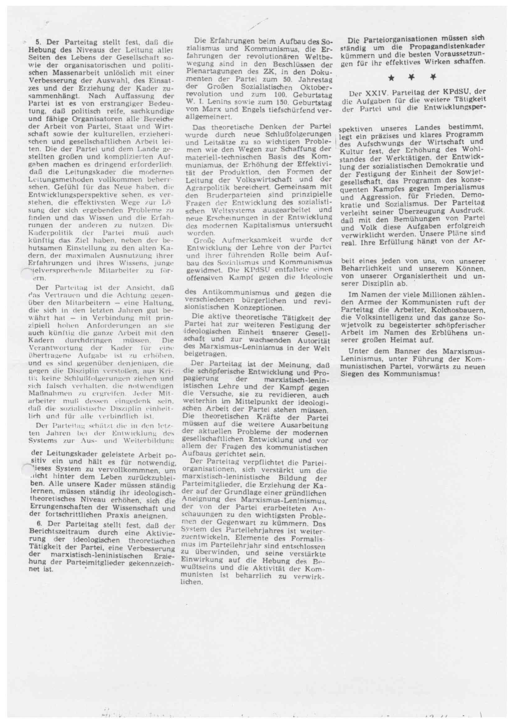 Das Dokument „DKP Info PV 1971“ behandelt zentrale Aspekte des XXIV. Parteitags der Kommunistischen Partei der Sowjetunion (KPdSU) und reflektiert dabei die politischen, wirtschaftlichen und internationalen Zielsetzungen der Sowjetunion Anfang der 1970er Jahre. Hier ist eine ausführliche Zusammenfassung des Inhalts: