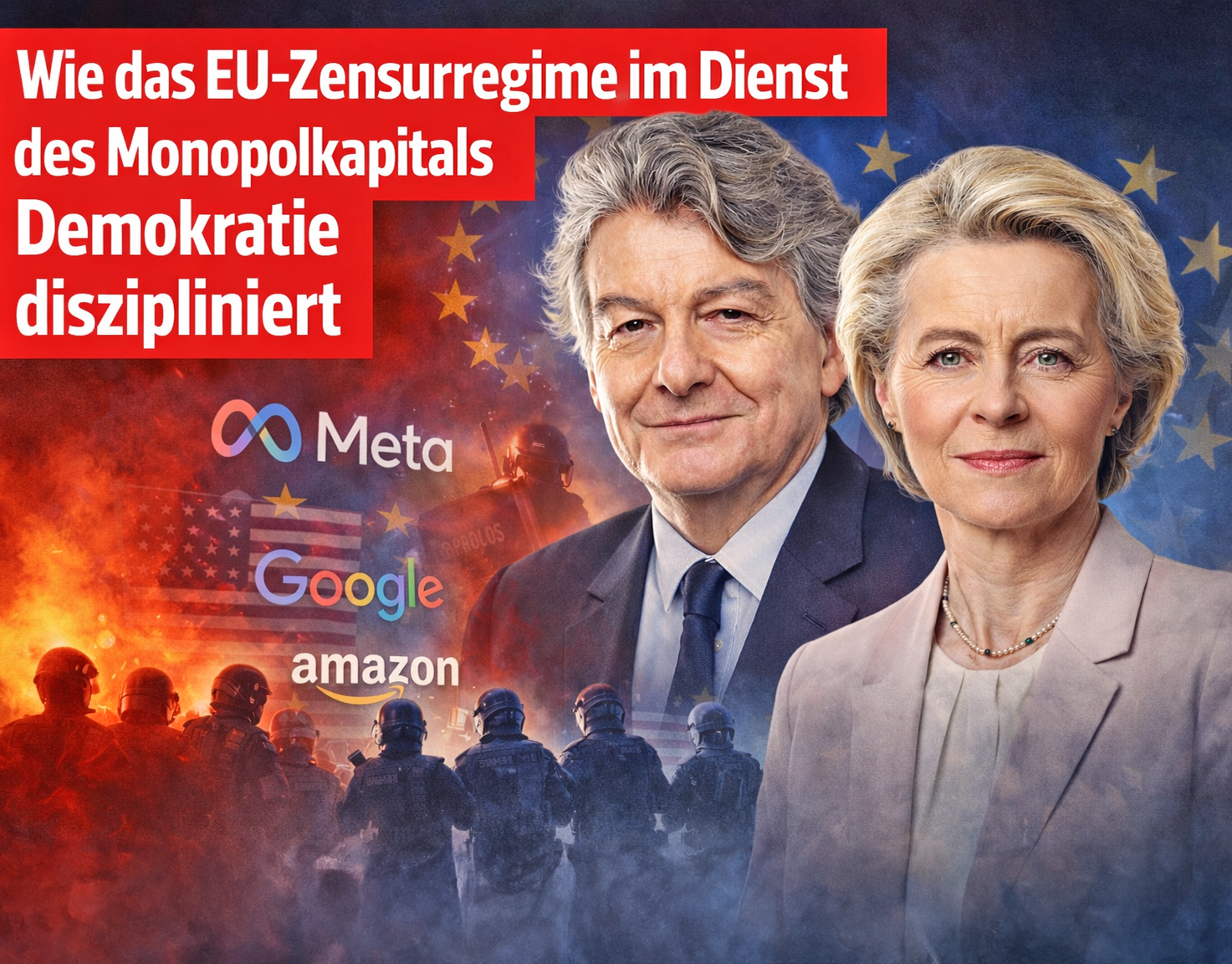 Die EU verkauft ihre digitale Regulierung als Schutz vor Desinformation und Manipulation. Tatsächlich entsteht ein Machtinstrument, das die öffentliche Debatte strukturiert und oppositionelle Stimmen begrenzt. In einer Phase sozialer Zuspitzung, wachsender Ungleichheit und militärischer Eskalation wird Kontrolle über digitale Sichtbarkeit zur strategischen Frage. Das sogenannte Zensurregime ist Ausdruck dieser Entwicklung – nicht technischer Fortschritt, sondern politische Disziplinierung im Interesse der herrschenden Ordnung.