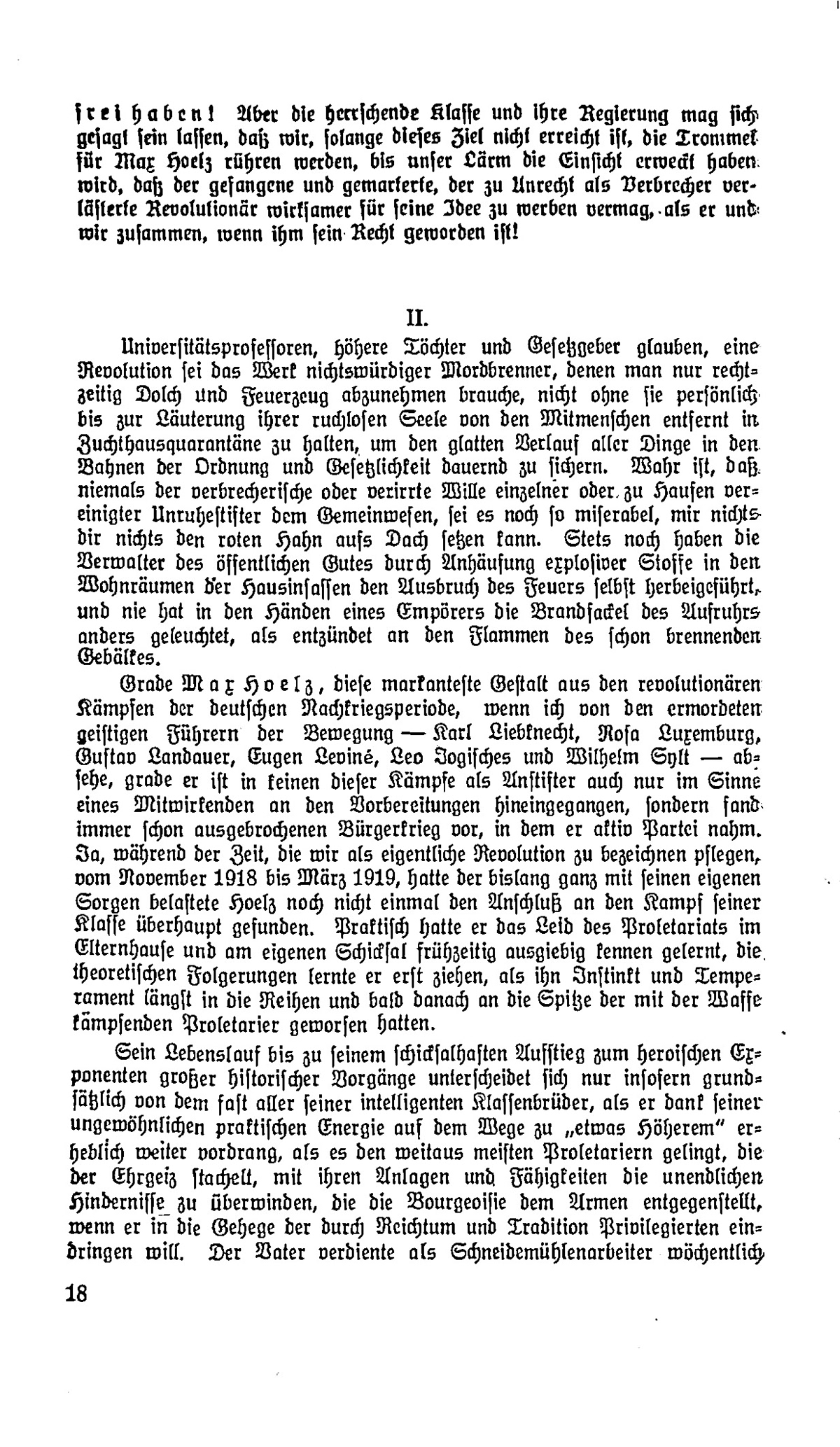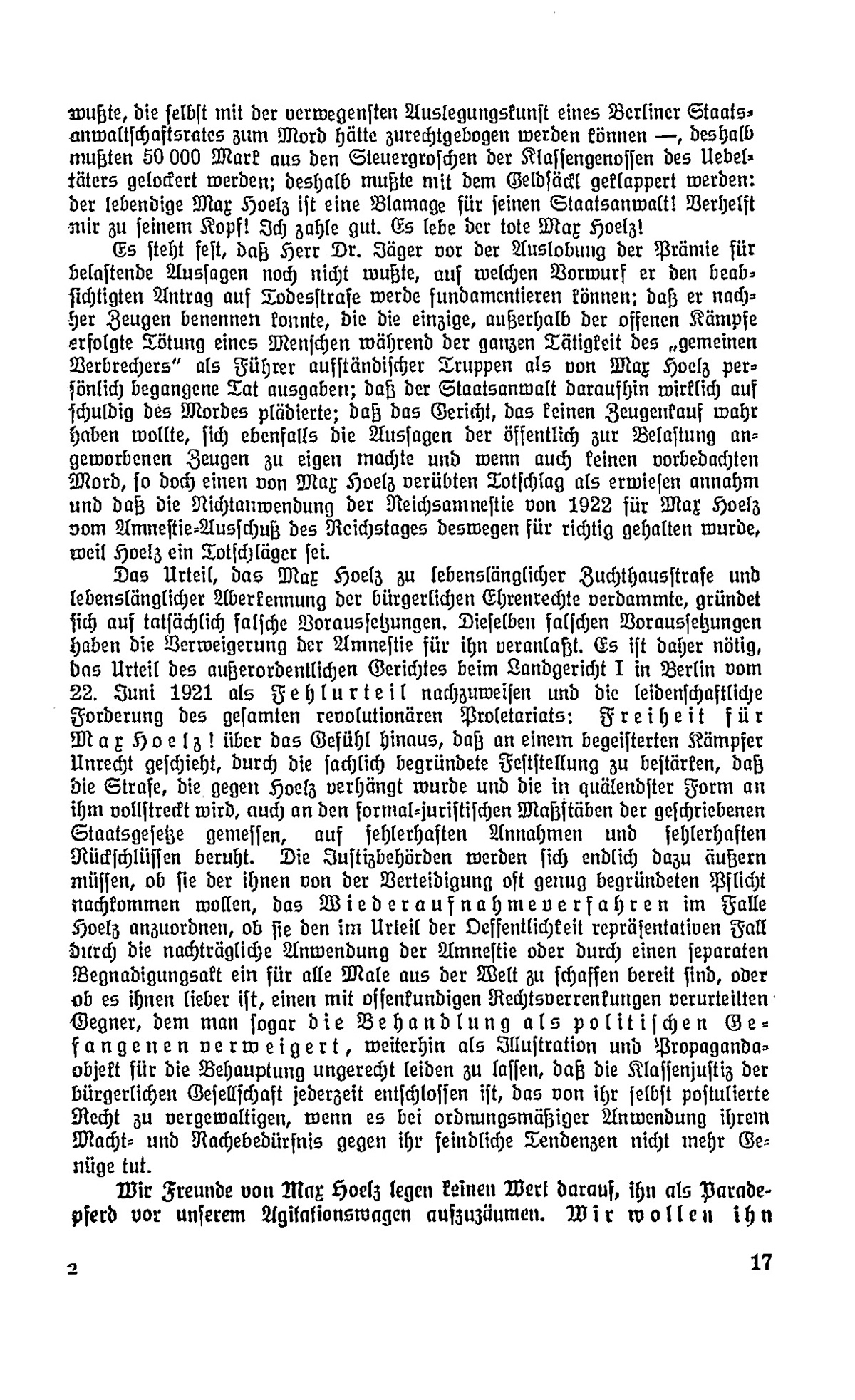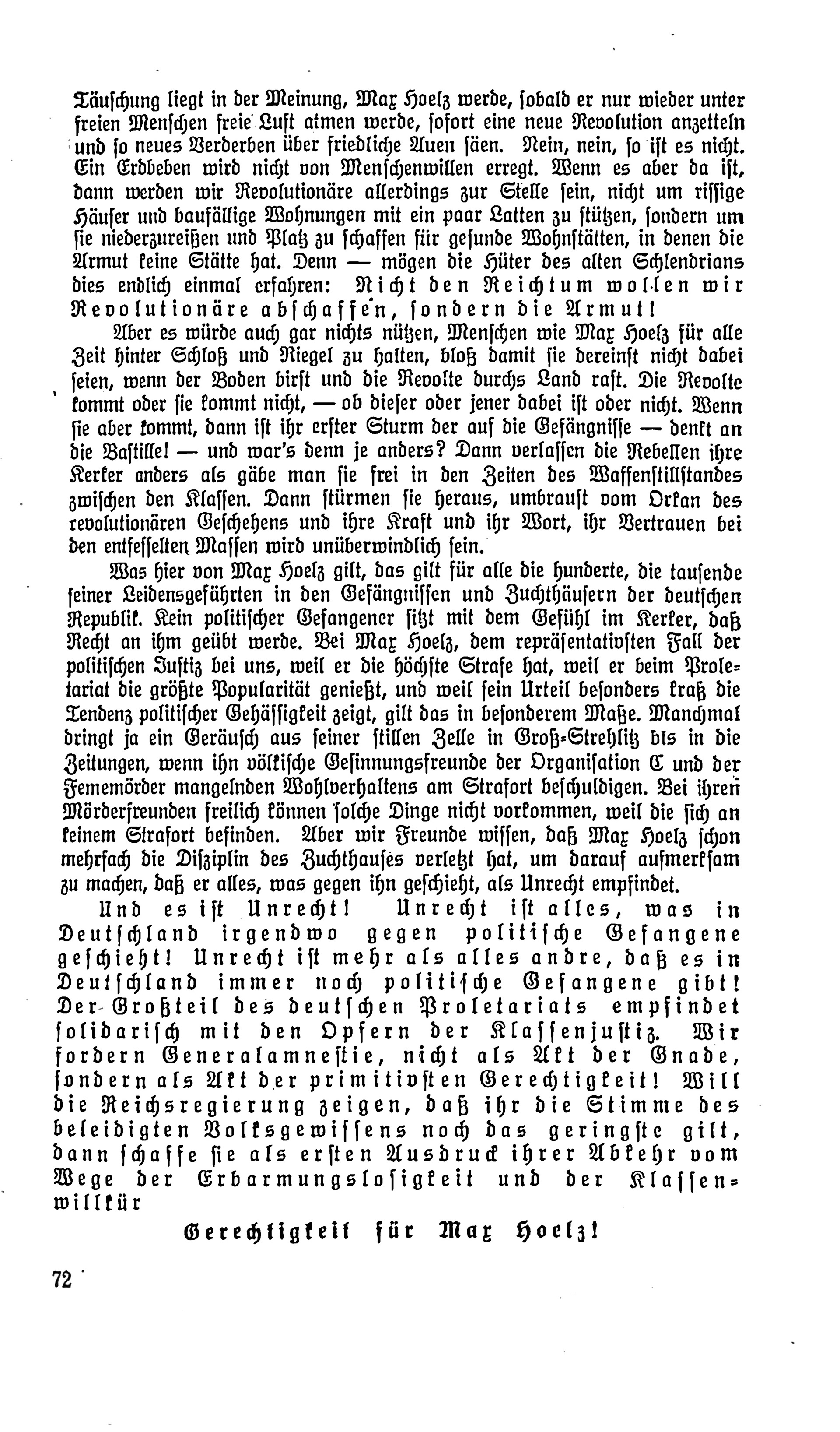 Das hochgeladene Dokument behandelt das Thema "Gerechtigkeit für Max Hoelz" und beleuchtet seine Rolle im revolutionären Kontext der Weimarer Republik. Es beschreibt seine Handlungen als Ausdruck des sozialen Widerstands gegen die herrschenden Klassenverhältnisse und den Einsatz für die Belange des Proletariats. Der Text setzt sich kritisch mit der rechtlichen Behandlung von Hoelz auseinander, thematisiert die ideologische Voreingenommenheit des bürgerlichen Rechtssystems und stellt dies in den Kontext von sozialen Kämpfen und der Revolutionsbewegung.