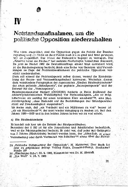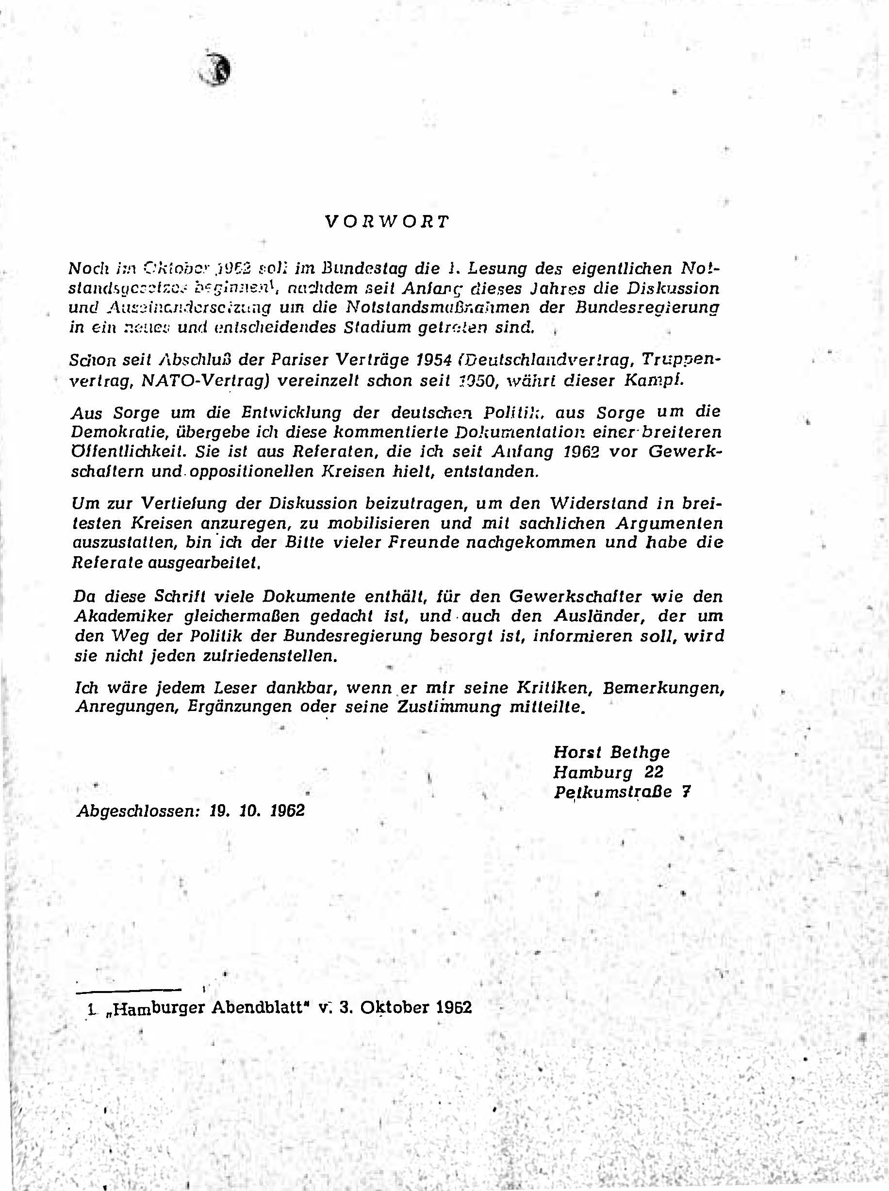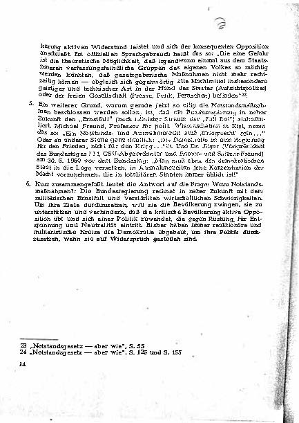 Bethge zeigt auf, dass internationale Akteure die deutsche Politik skeptisch beobachten und nennt Beispiele wie Abrüstungsgespräche und diplomatische Entwicklungen. Zudem betont er die Bedeutung des Widerstands gegen die Notstandsmaßnahmen, um Demokratie und Grundrechte zu schützen. Die Dokumentation enthält Kommentare und Analysen, um verschiedene Zielgruppen – von Gewerkschaftern bis hin zu Akademikern – über die Hintergründe der Gesetzgebung und deren potenzielle Folgen zu informieren.