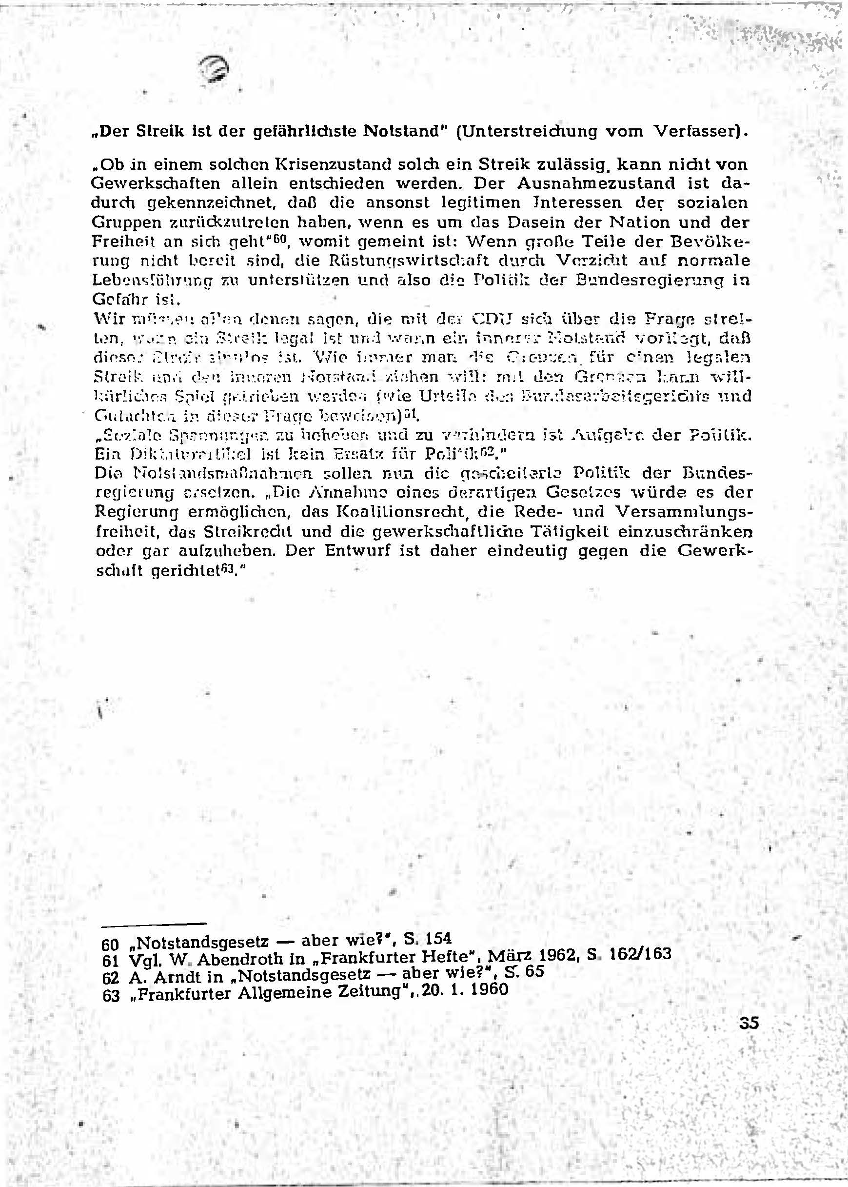 Der Text von Horst Bethge behandelt die Diskussion um die Notstandsgesetzgebung in Deutschland, die seit den 1950er Jahren und verstärkt seit Anfang 1962 intensiv geführt wurde. Bethge dokumentiert die politischen Debatten und internationalen Entwicklungen, die die Notstandsgesetze beeinflussen. Er äußert sich kritisch zur deutschen Politik, insbesondere hinsichtlich des Strebens nach eigenen Atomwaffen und des Umgangs mit der deutschen Teilung.