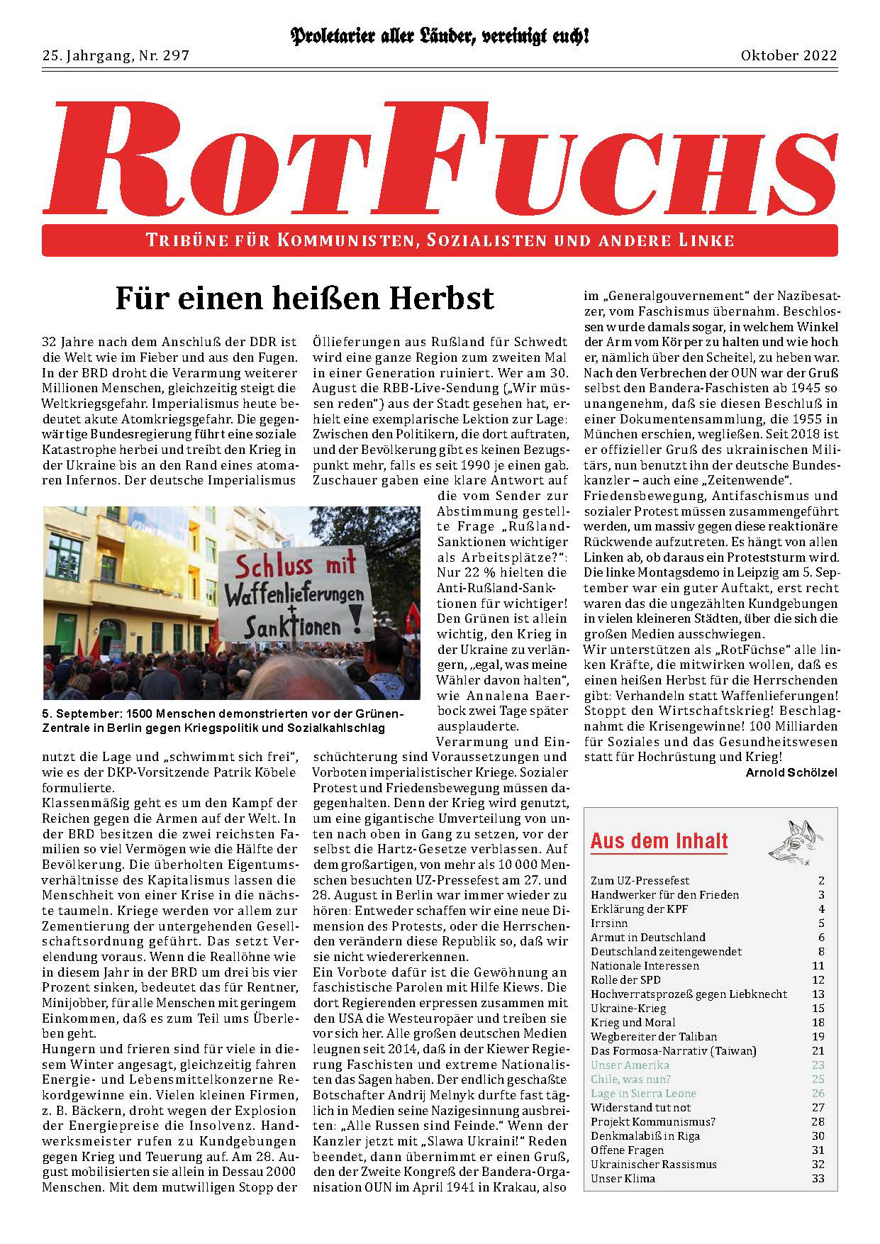 Die Analyse greift zurück auf die Erfahrungen der Sozialistischen Internationale von 1914, die an der Kriegsfrage zerbrach, weil die meisten sozialistischen Parteien die imperialistische Kriegslogik ihres jeweiligen „Vaterlandes“ unterstützten. Die wenigen Ausnahmen, darunter die russischen Bolschewiki und Karl Liebknecht, werden hier als Vorbilder für den heutigen Widerstand gegen Kriegstreiberei dargestellt. Der „RotFuchs“ ruft dazu auf, der marxistischen Grundhaltung treu zu bleiben, wonach der „Hauptfeind im eigenen Land steht“. Nur durch die Überwindung des Kapitalismus und die Schaffung einer sozialistischen Gesellschaftsordnung könne ein dauerhafter Frieden erreicht werden.